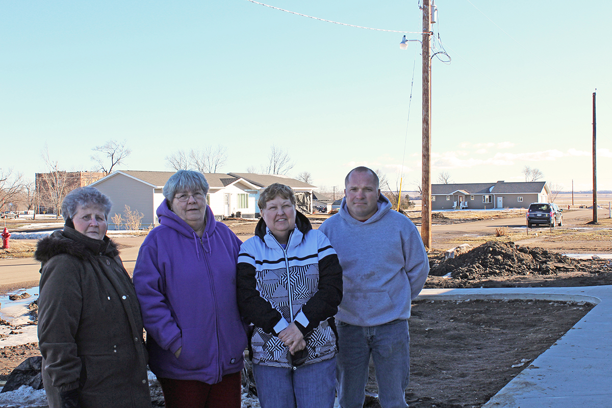 The dust of empty lots is proving to be a challenge for the community of Delmont. Pictured are, from left, City Council Member Earla Strid, long-time resident Barbara Hoffman, Mayor Mae Gunnare and Delmont Non-Profit Development Corporation President Darren Fechner. Photo by Elizabeth “Sam” Grosz